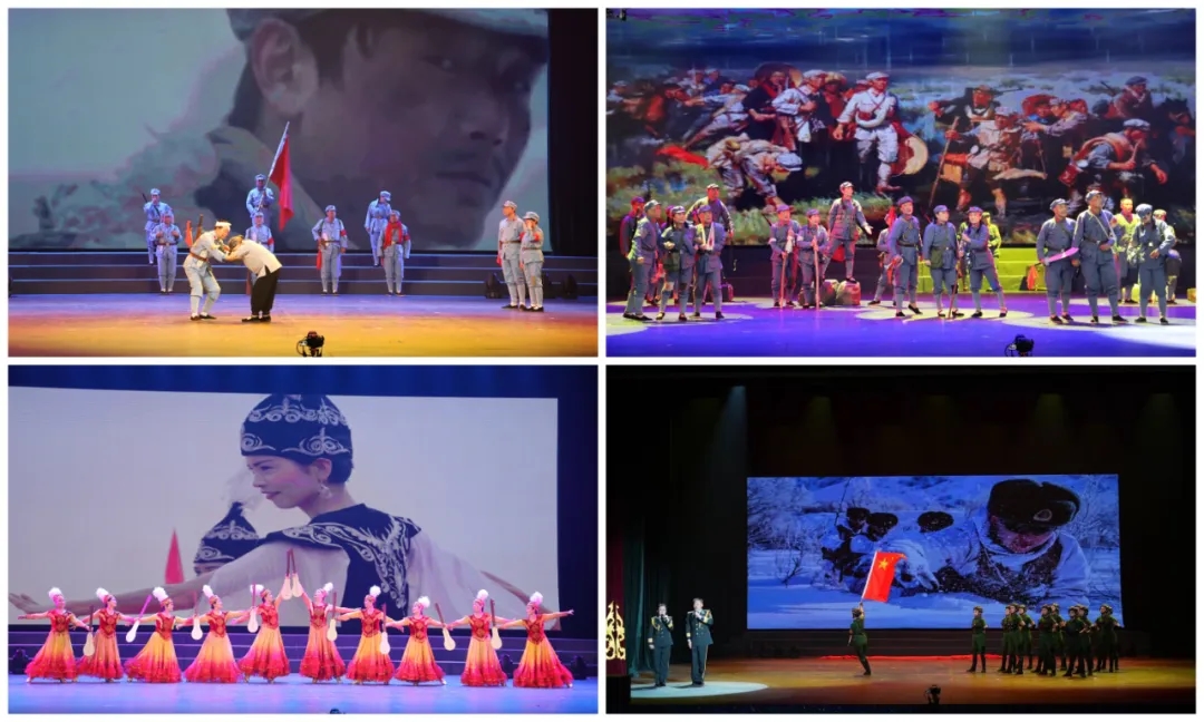 歌舞《凯歌进新疆》、音诗画《光辉的足迹》、情景剧《十送红军》,带着观众一起追忆中国人民在抗日战争、解放战争、凯歌进新疆及建设新疆的光辉历程,讴歌老一辈军人无私无畏的革命精神;情景剧《同心共筑中国梦》,展现了新疆各族群众在中国共产党的领导下,心往一处想、劲往一处使,共同为实现中国梦而努力奋斗的坚定决心;情景剧《永远的小白杨》、诗画舞《清澈的爱 只为中国——喀喇昆仑的忠诚》、舞蹈《柯尔克孜人民歌颂党》,展现了各族群众与边防官兵一道,牢记习近平总书记嘱托,守护祖国边防,践行军民团结的使命担当。