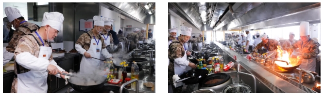 技能操作现场气氛紧张热烈,秩序井然。在烹饪操作区,各队选手精神抖擞,动作娴熟,从选料、清洗、切配到烹制,各个环节衔接流畅,在规定时间内制作出色香味形俱佳、符合营养标准和部队官兵口味的菜品和汤品,充分展示了扎实的基本功和高效的团队协作能力。