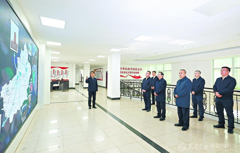 4月20日,自治区党委书记陈小江、自治区主席艾尔肯·吐尼亚孜来到自治区文化和旅游厅调研并座谈。这是陈小江、艾尔肯·吐尼亚孜在自治区文旅厅,了解全区文化旅游资源开发和文旅事业发展情况。□石榴云/新疆日报记者崔志坚摄