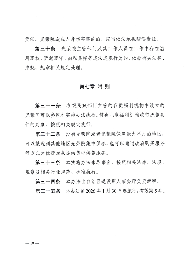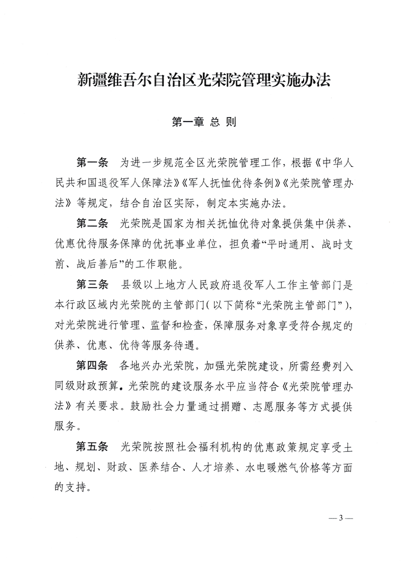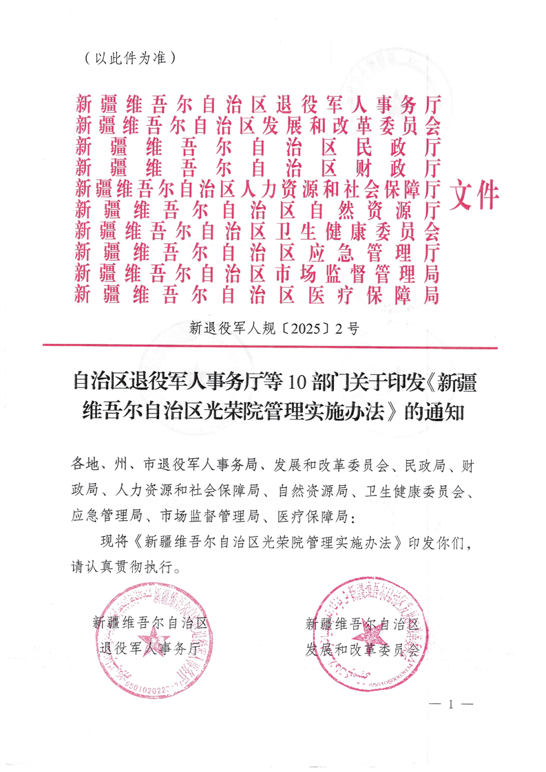 自治区退役军人事务厅等10部门关于印发《新疆维吾尔自治区光荣院管理实施办法》的通知