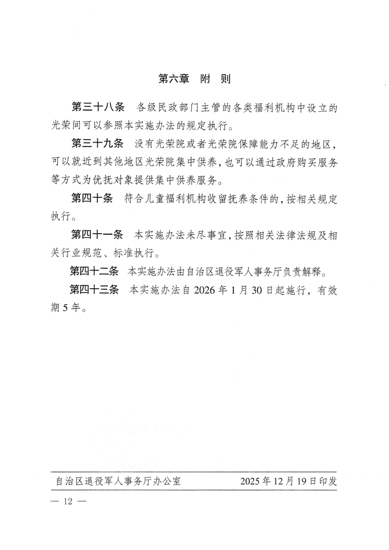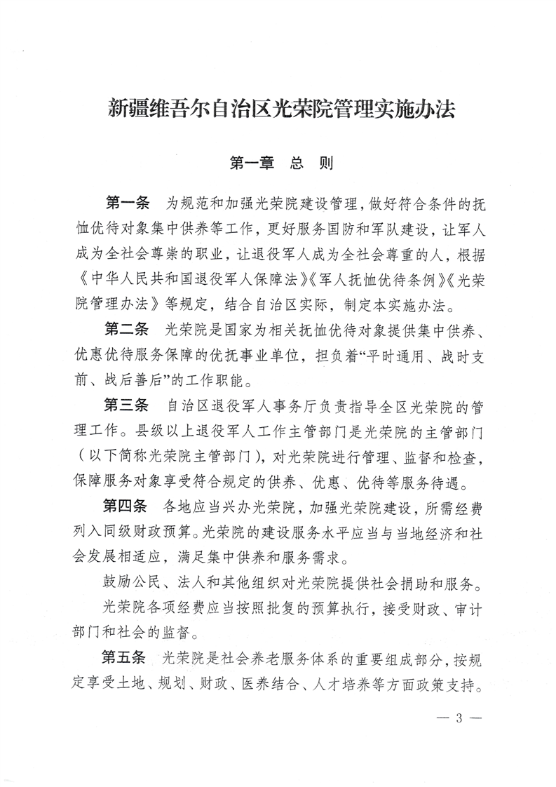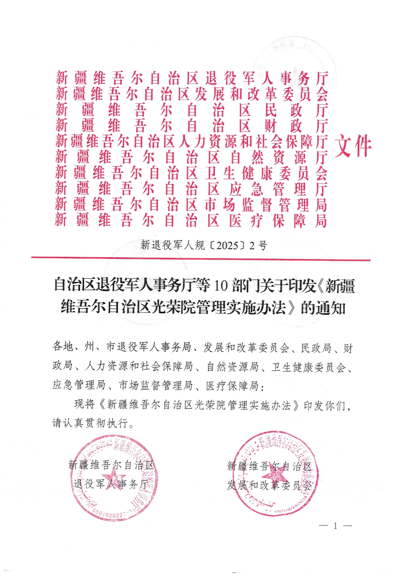 自治区退役军人事务厅等10部门关于印发《新疆维吾尔自治区光荣院管理实施办法》的通知